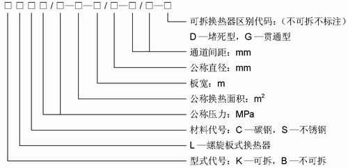 3、螺旋板式換熱器型號表示方法如下: